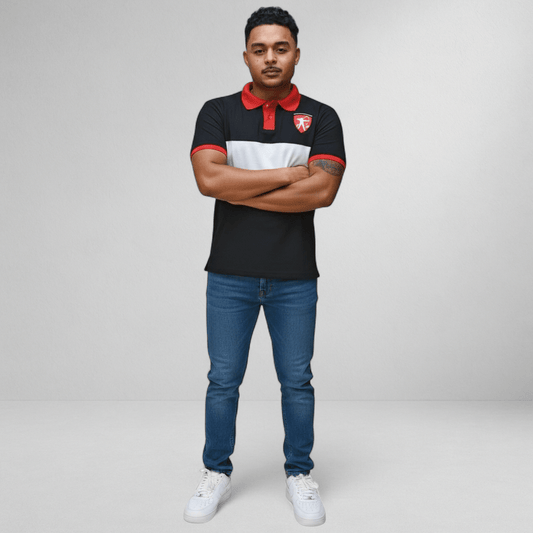 Marksmen Piqué Cotton Polo – Black / Red Collar