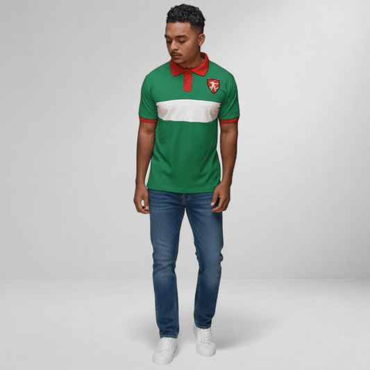 Marksmen Piqué Cotton Polo – Kelly Green / Red Collar