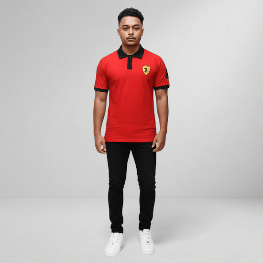 Marksmen Piqué Cotton Polo – Red / Black Collar