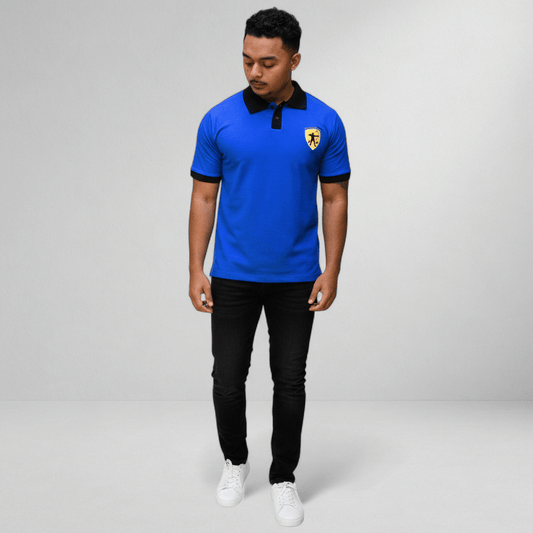 Marksmen Piqué Cotton Polo – Royal Blue / Black Collar