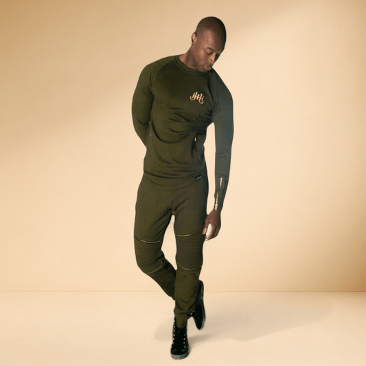 J. Hinton Signature Luxe Moto Tracksuit — Olive Gold